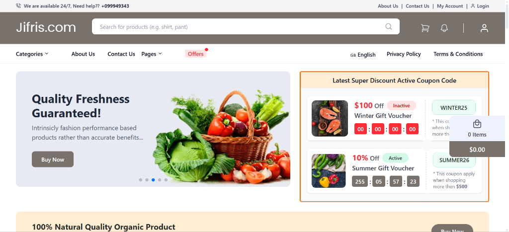 Jifris.com is a comprehensive e-commerce ecosystem consisting of a high-performance customer storefront, a robust backend API, and a feature-rich admin dashboard. Designed for global scalability, it features multi-language support, real-time inventory tracking, and seamless integration with major payment gateways like Stripe and PayPal.